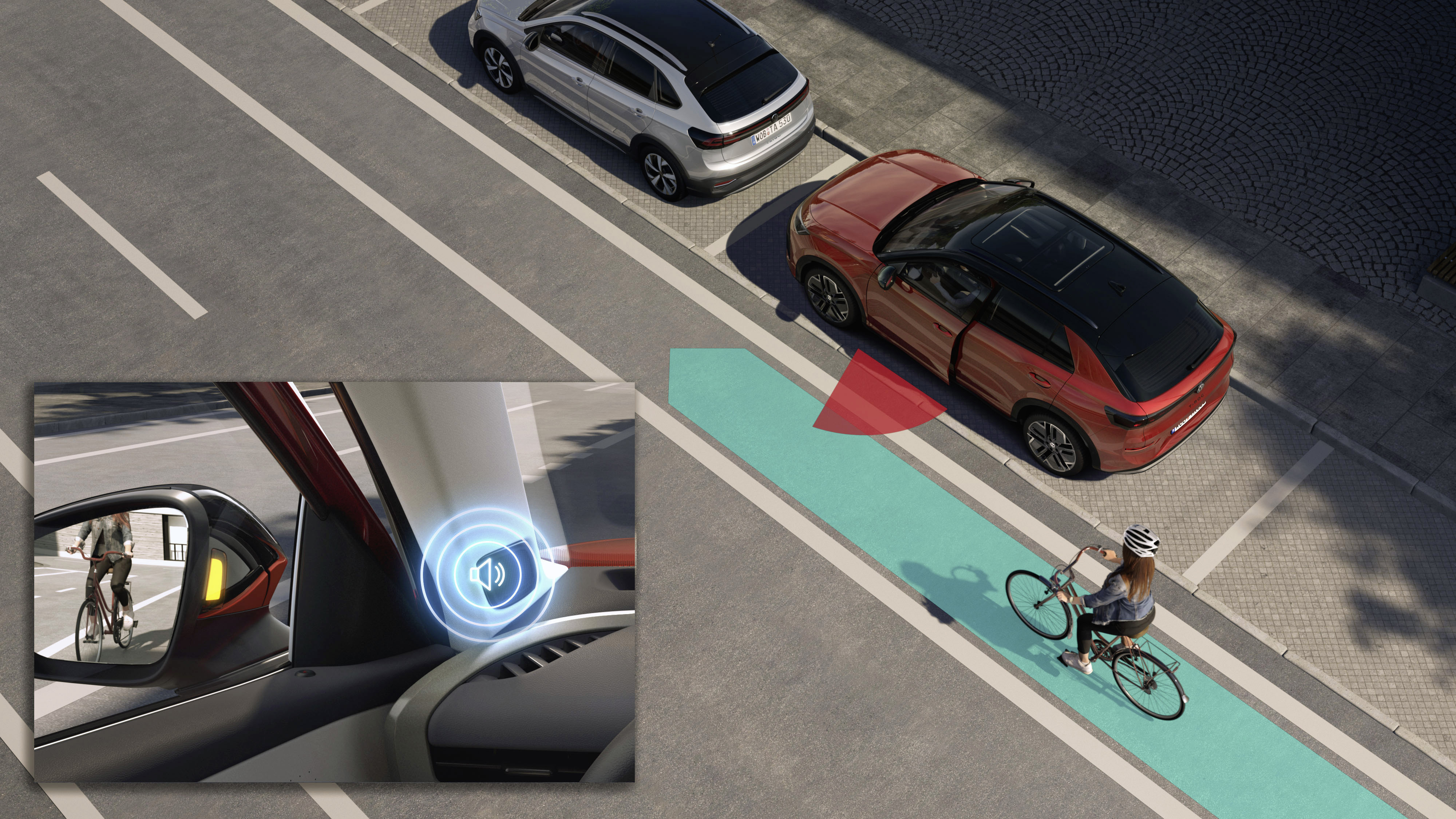 Nya T-Roc är som standard utrustad med ett urstigningsvarningssystem som kan skydda cyklister.