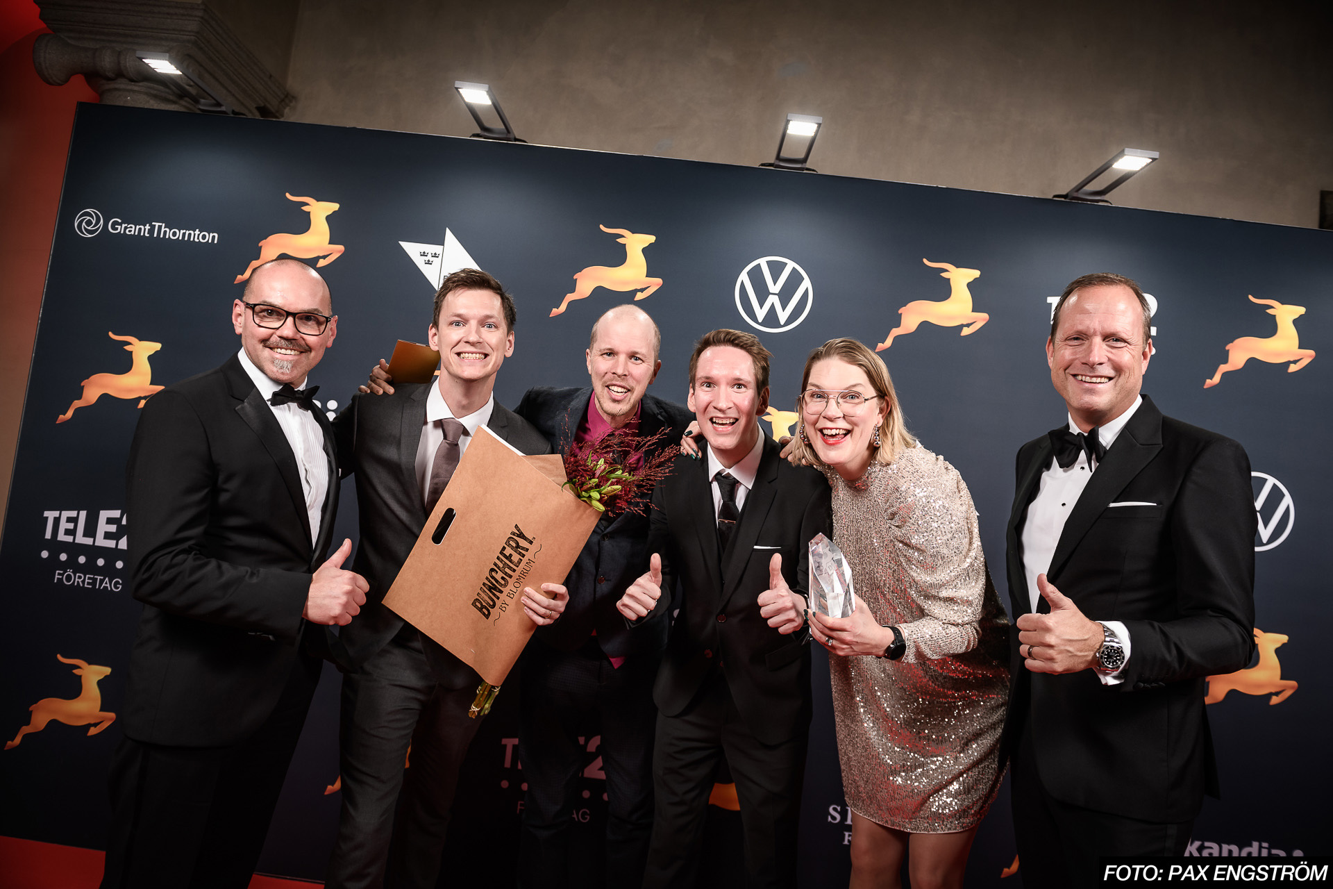 Sten Forsberg (längst till höger på bilden), chef Volkswagen Personbilar, fick förra året äran att dela ut 2024 års ”Impactgasell" till Axessibility Lab.
